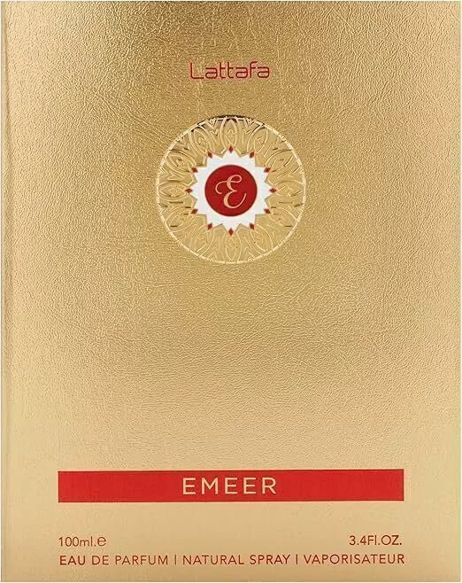 O perfume Lattafa Emeer é uma expressão sofisticada de elegância e frescor. As notas iniciais são bergamota, limão, sálvia esclaréia e bagas de zimbro, proporcionando uma abertura vibrante e revigorante. A harmonia no coração é criada pelo chá branco, cardamomo e olíbano. As notas de fundo de âmbar cinzento, cedro, patchouli e cashmeran deixam um rastro duradouro. É ideal para pessoas que buscam um aroma equilibrado e marcante.